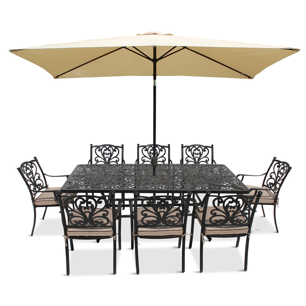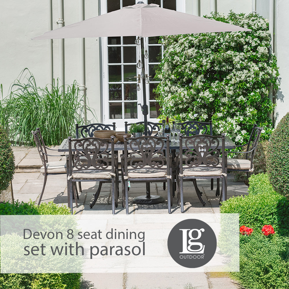 Devon 8 Seat Dining Set with 2.0 x 3.0m Parasol