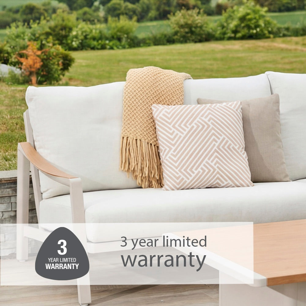 The Lisbon Rectangular Modular Dining Set is crafted with meticulous attention to detail. Featuring: Stain Resistant Fabric, Season-proof cushions, Environmentally Friendly EcoCore, 3 year Limited Warranty, Wood-Effect Heat Transfer Armcaps and Table Tops, UV resistance, Powder Coated Lightweight Frame. This product is made from high-quality materials such as Aluminium, EcoCore Poly Fibre, Spun Polyester Fabric. Experience the perfect blend of functionality, style with the Lisbon Rectangular Modular Dining Set.
