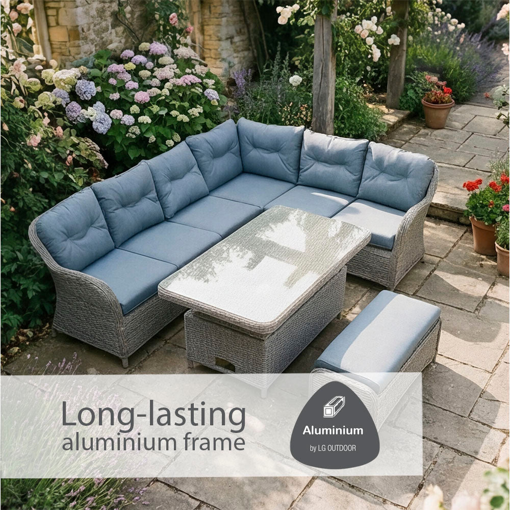 The cushions on our dining and lounge sets come with three multi-functional features making them super-durable for outdoor use.At LG Outdoor we know how unpredictable the summer weather can be, that’s why our eden Season-proof Cushions are water-repellent as well as quick drying, so you can leave them outside during those annoying summer showers. And for prolonged outdoor use they’re also UV resistant. Unlike other waterproof cushions, eden SeasonProof Cushions are soft to the touch, and super-comfortable thanks to our natural-feel fabric.