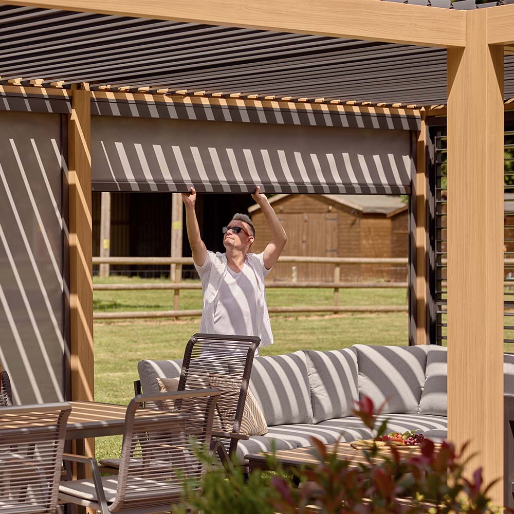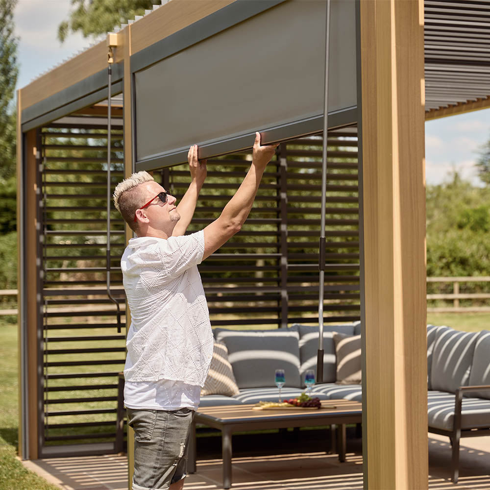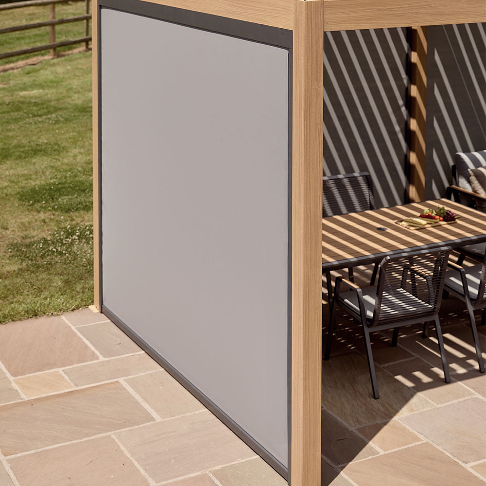 Enhance your Sanctuary Pergola with the Sanctuary 3m Texteline Side Wall, offering a blend of style and practicality. Made with textilene, plastic, steel and featuring adjustable textilene blind height, lightweight, UV resistant, water repellent, suitable for 3 metre Sanctuary Pergola sides. With easy pull down operation.