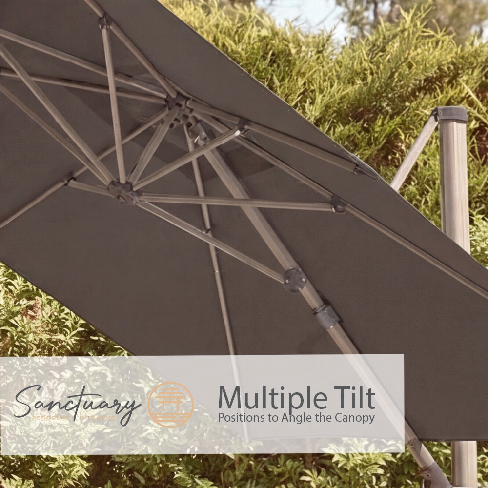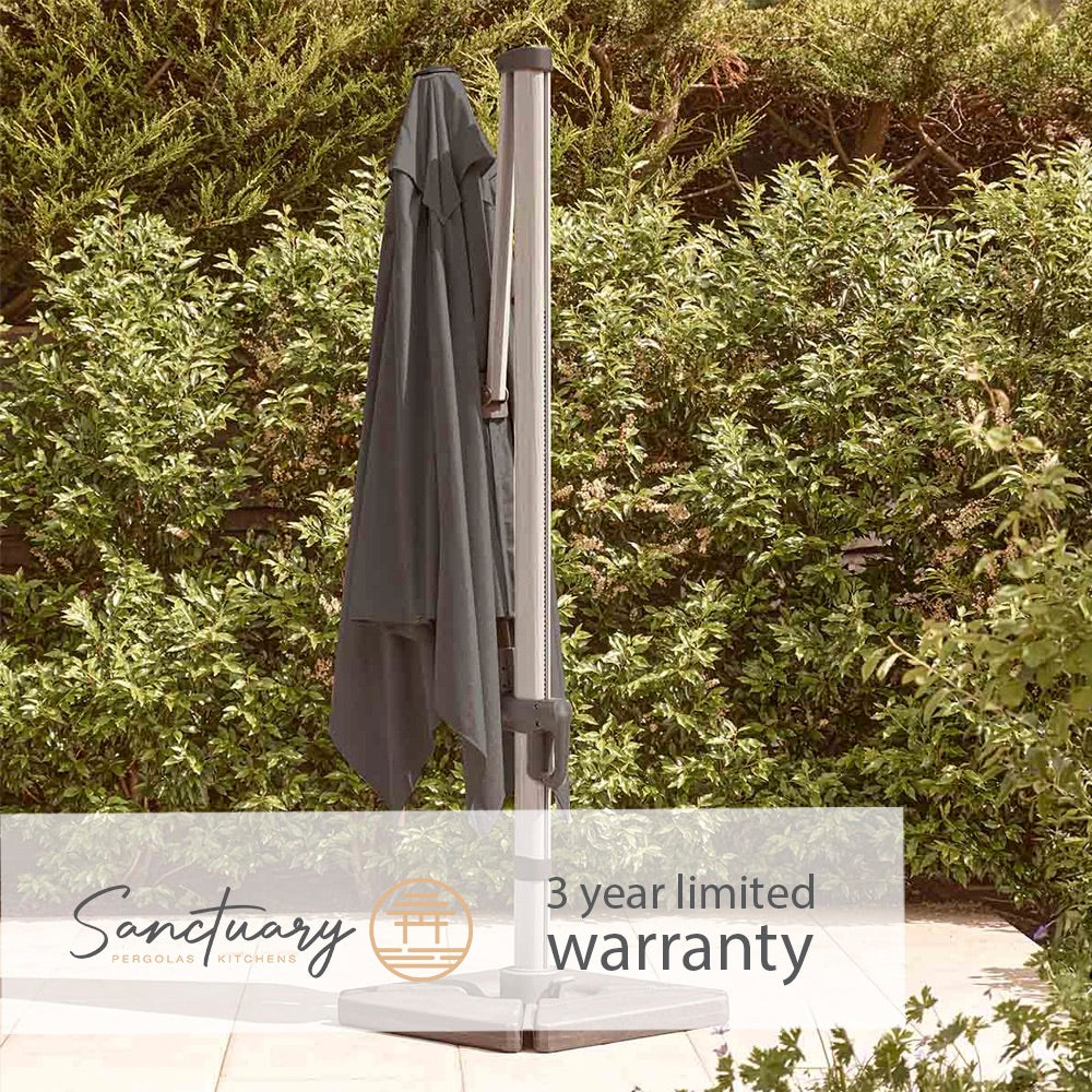 Create generous, adjustable shade exactly where you want it with this premium 3m x 3m cantilever parasol. The square canopy offers broader coverage than a traditional round design, while the light grey 220g spun-polyester fabric provides water resistance and a UV50+ rating to help protect you on bright summer days.