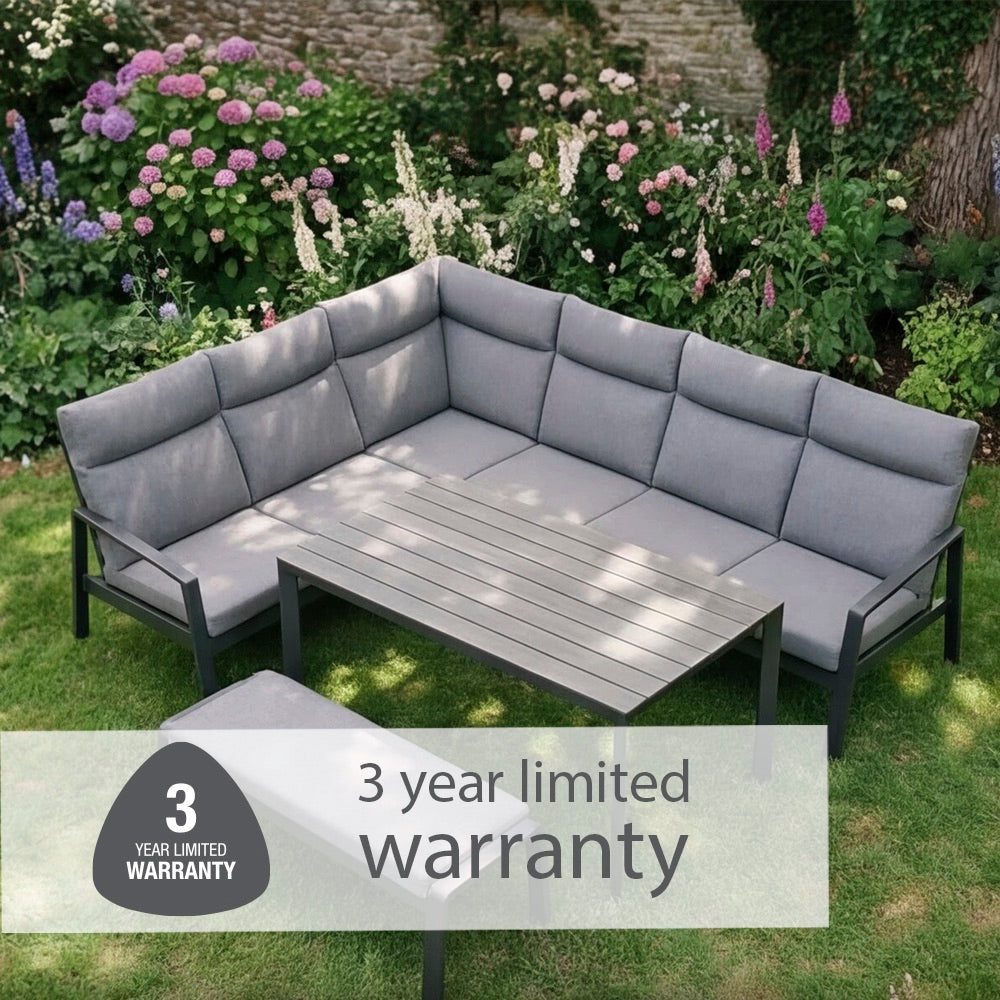 High chair backs, generous deep seats, and reclining seat options make the Santorini range super comfortable. Graphite grey aluminium frames with dark grey cushions.