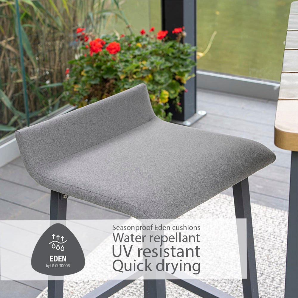 The cushions on our dining and lounge sets come with three multi-functional features making them super-durable for outdoor use.At LG Outdoor we know how unpredictable the summer weather can be, that’s why our eden Season-proof Cushions are water-repellent as well as quick drying, so you can leave them outside during those annoying summer showers. And for prolonged outdoor use they’re also UV resistant. Unlike other waterproof cushions, eden SeasonProof Cushions are soft to the touch, and super-comfortable thanks to our natural-feel fabric.