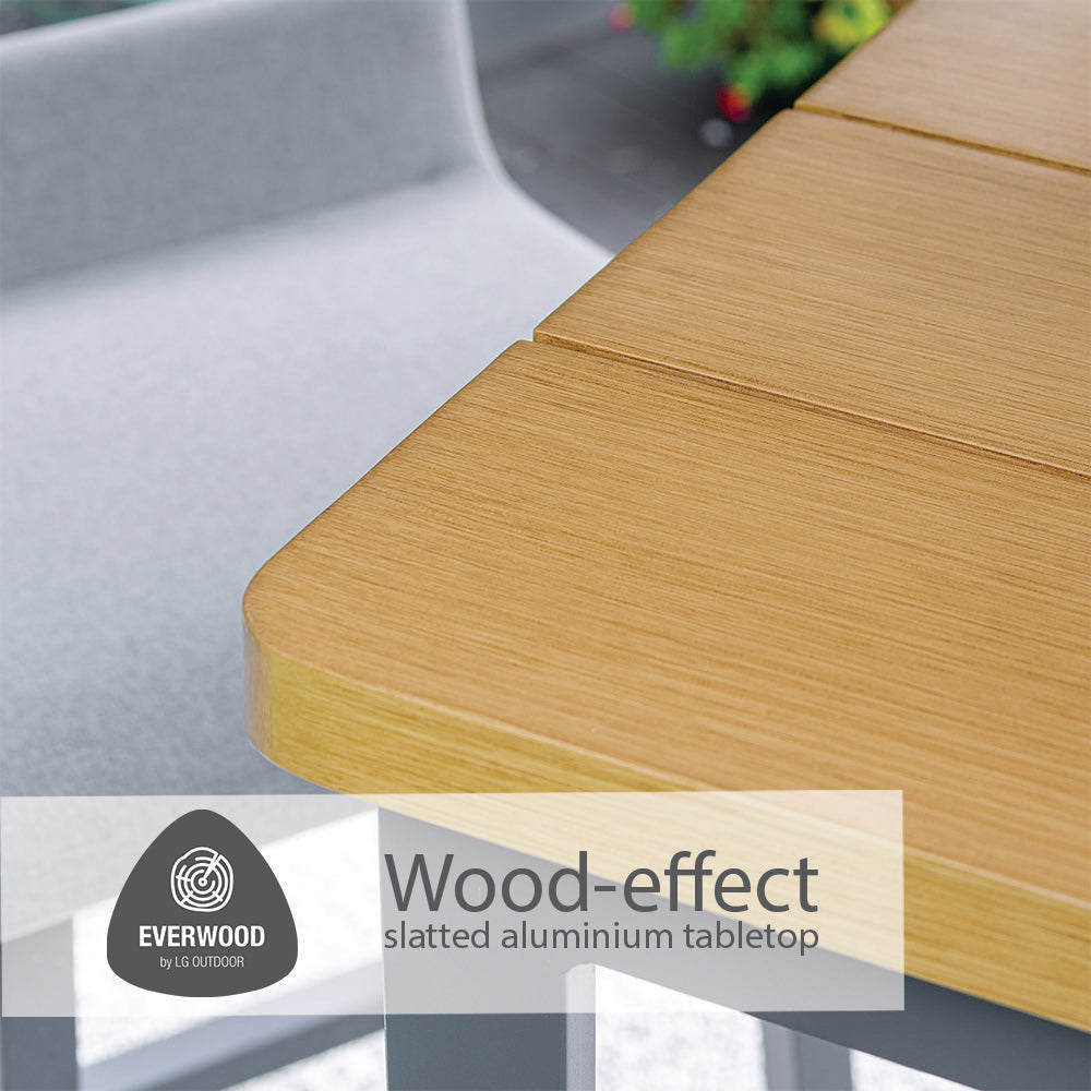 Sleek, contemporary design meets cutting-edge technology in the venice collection. This range provides the look and feel of indoor furniture, with technology designed for outdoor. Upholstered Chairs and Sofas are water and stain-resistant, while the hand-brushed wood-effect table tops lend the sets a beautiful natural look.